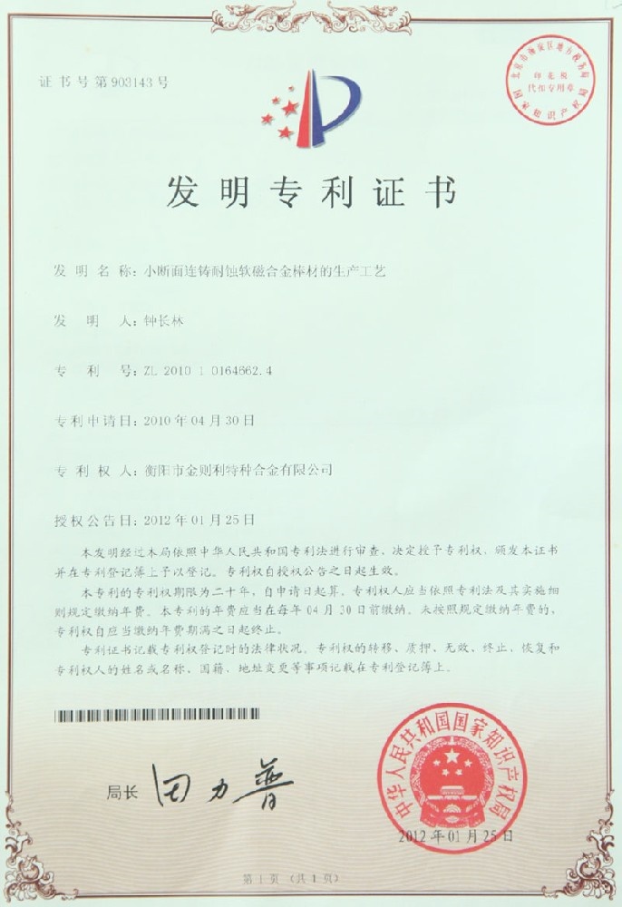 衡陽市金則利特種合金股份有限公司成立于一九九九年十二月,注冊資本人民幣兩千兩百萬元。注冊地址:衡陽市雁峰區(qū)白沙洲工業(yè)園長塘路2號。公司主營耐蝕軟磁合金,為湖南省高新技術企業(yè)。公司自成立以來,即致力于耐蝕軟磁合金的研發(fā)。 研制出的JL-31(00Cr13si2Pb)、JL-31B(00Cr13si2)、JL-31BS(00Cr13Si2S)、JL-37B(0Cr17Si2)、JL-37(0Cr17···